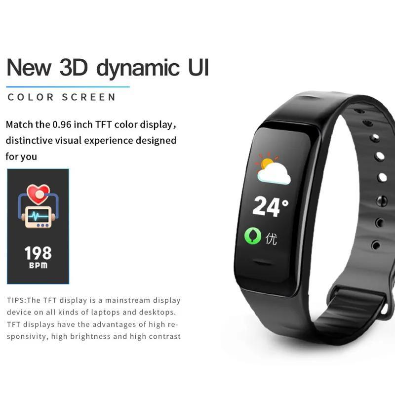 Color Bluetooth Smart bracelet C1P Heart Rate Monitor Blood Pressure Smart Wristband Fitness Tracker Smart Band For Android IOS