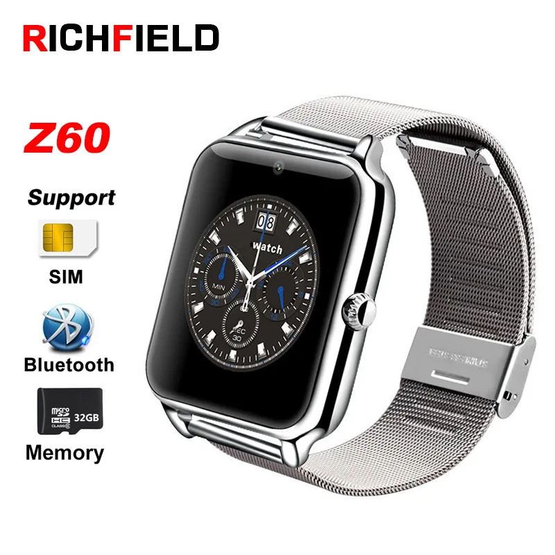 RICHFIELD Z60 bluetooth Smart watch men sport watches fitness tracker Stainless Steel phone watch sim ard smartwatch for android