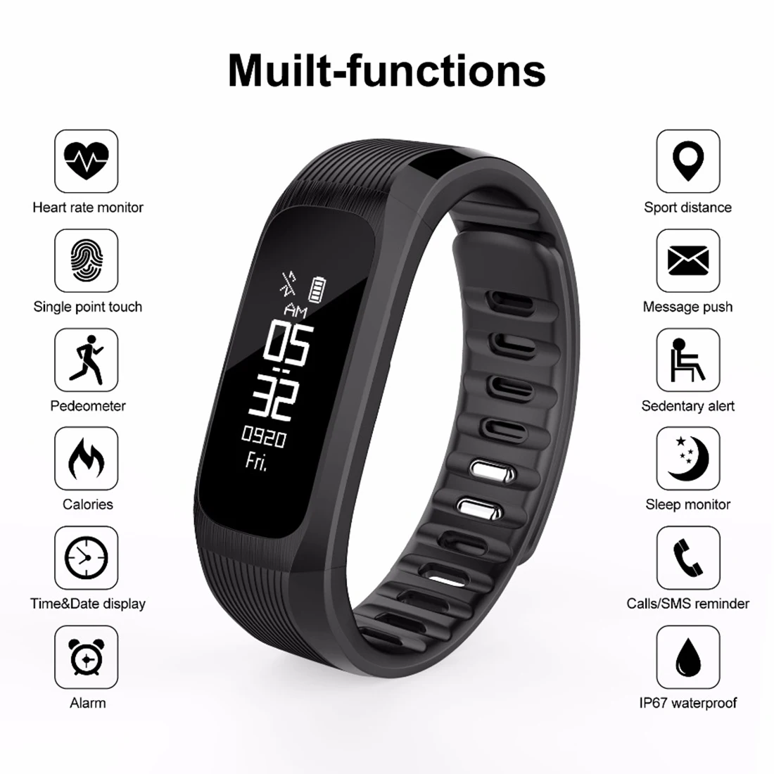 UP9 fashion Smart Bracelet Fitness Tracker Heart Rate Monitor Smart Band Vibration IP67 Waterproof Pedometer Sports smart watc