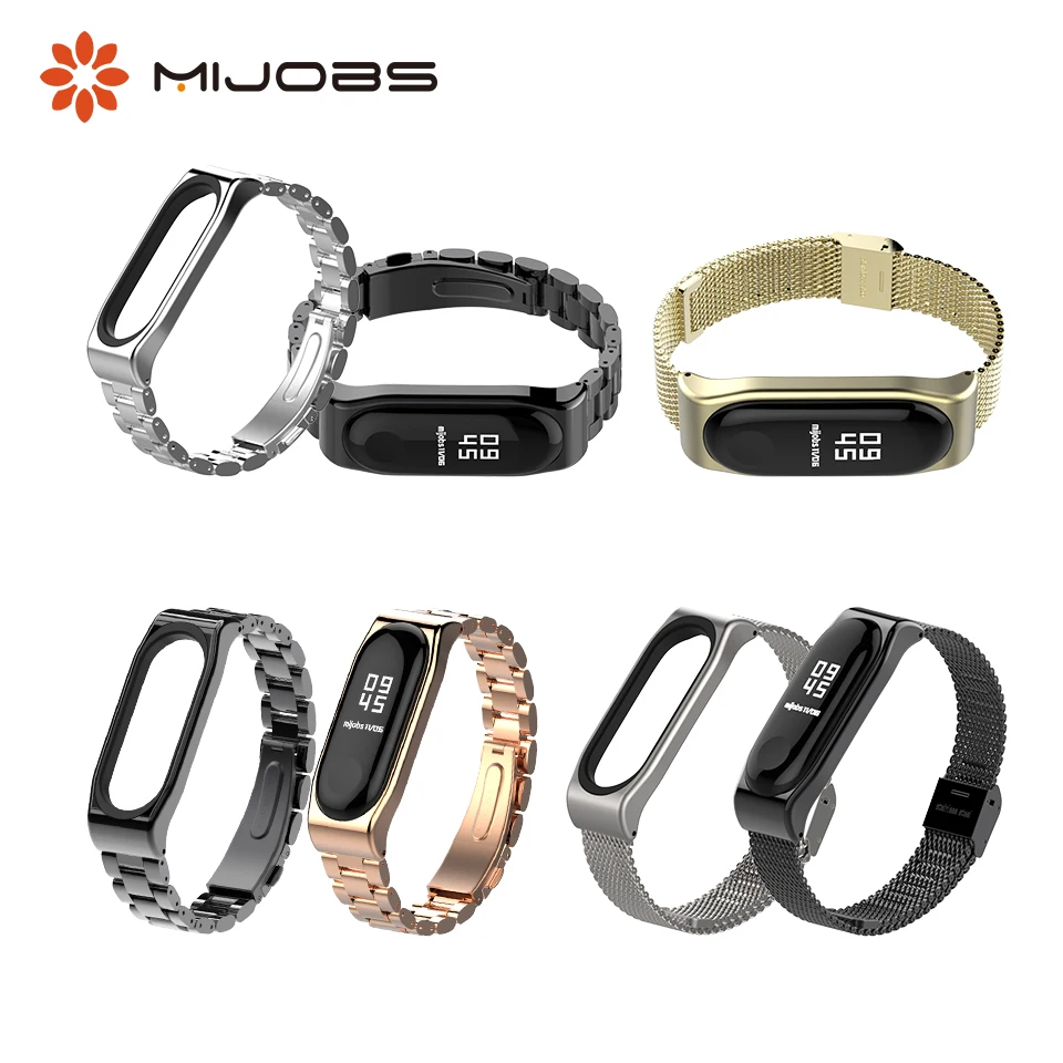 Mijobs Mi Band 3 Wrist Strap Metal Screwless Stainless Steel for Xiaomi Mi Band 3 Smart Watches Miband 3 Band Wristband Bracelet