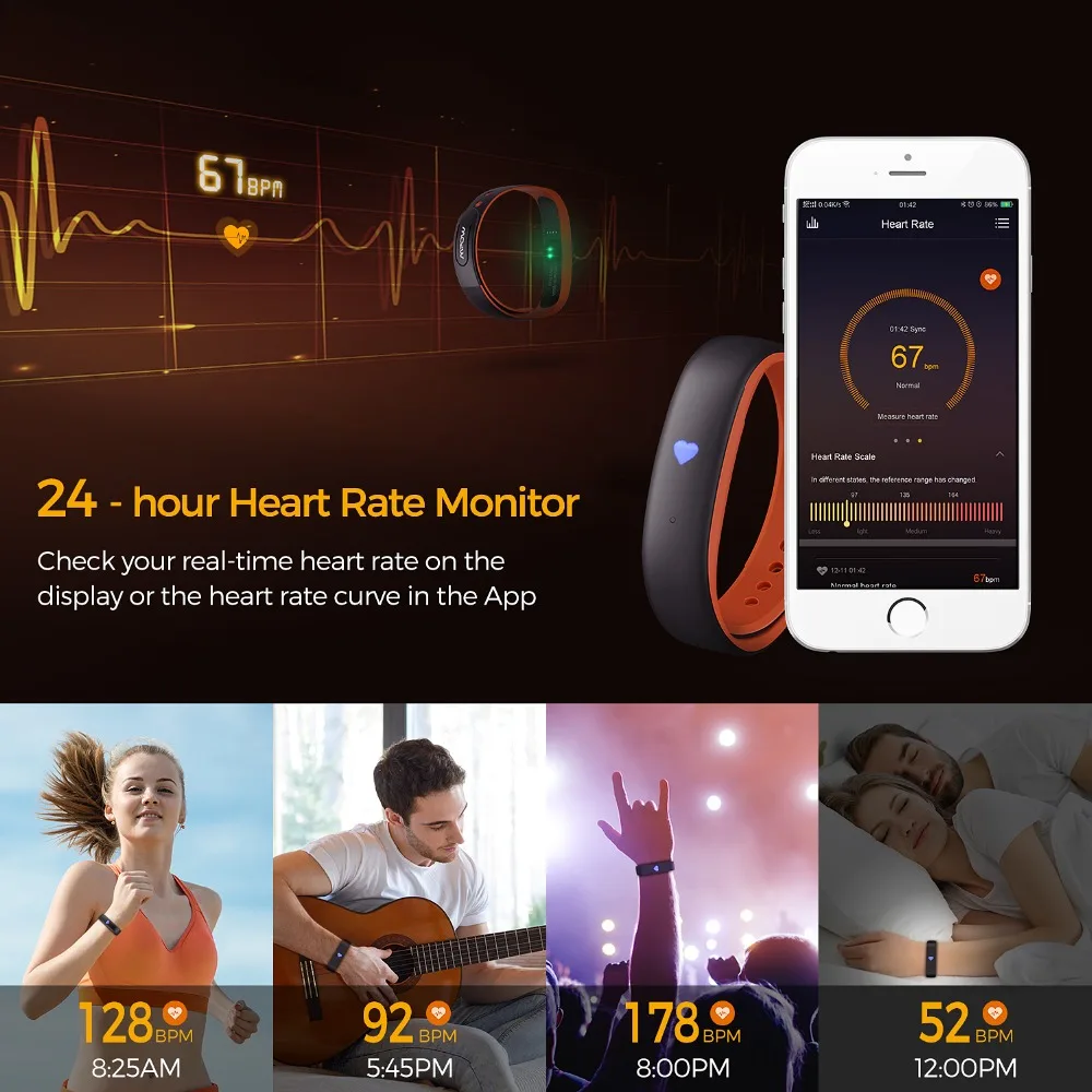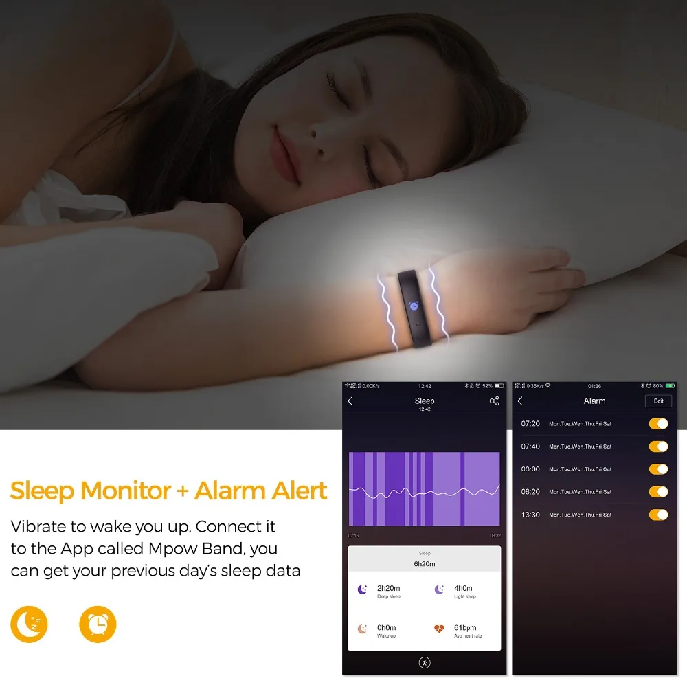 Mpow IP67 Fitness Activity Tracker Smartband Sleep Monitor 24 Hours Heart Rate Monitor Wristband Call Message Reminder Bracelet