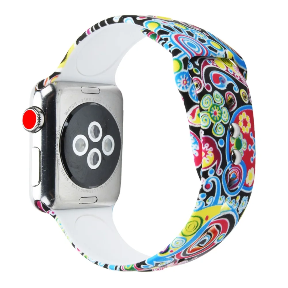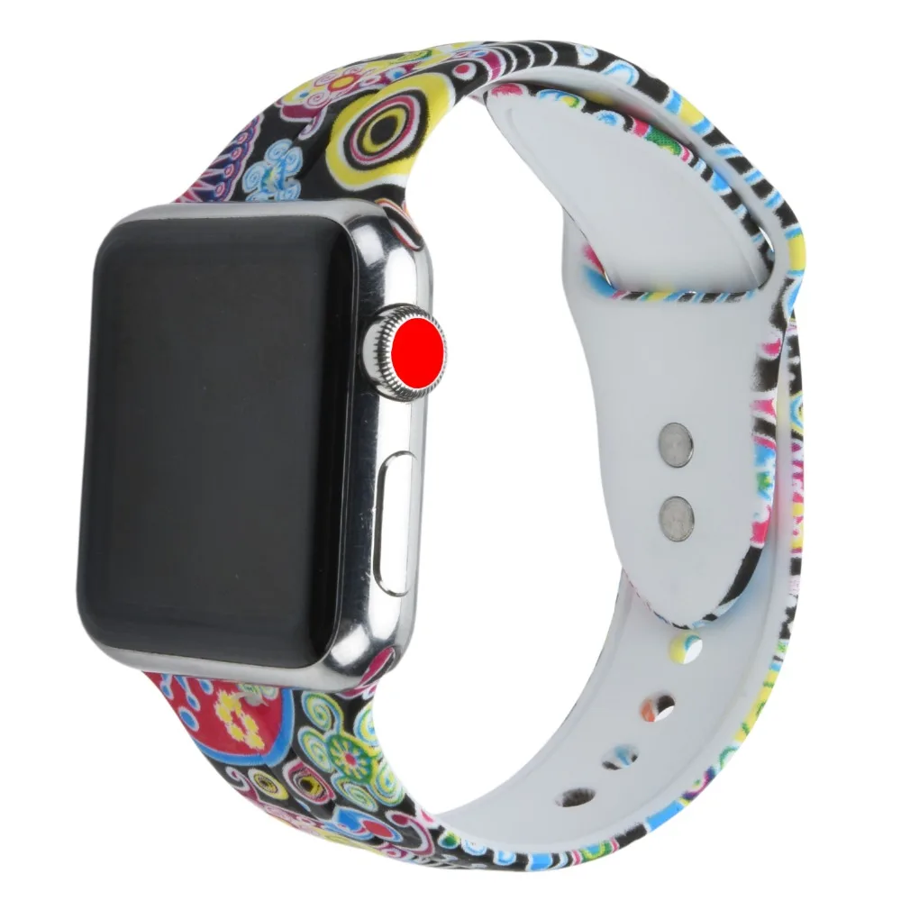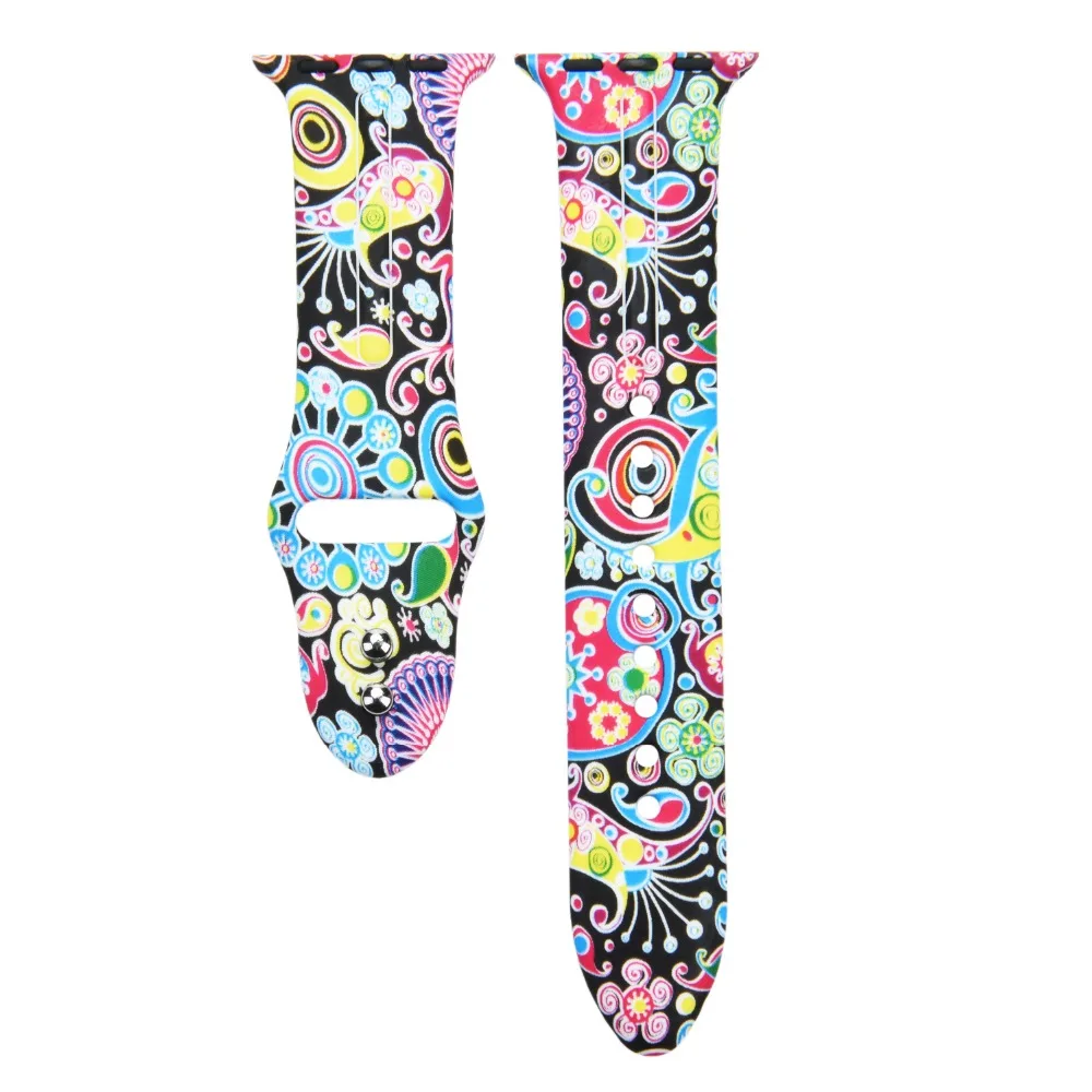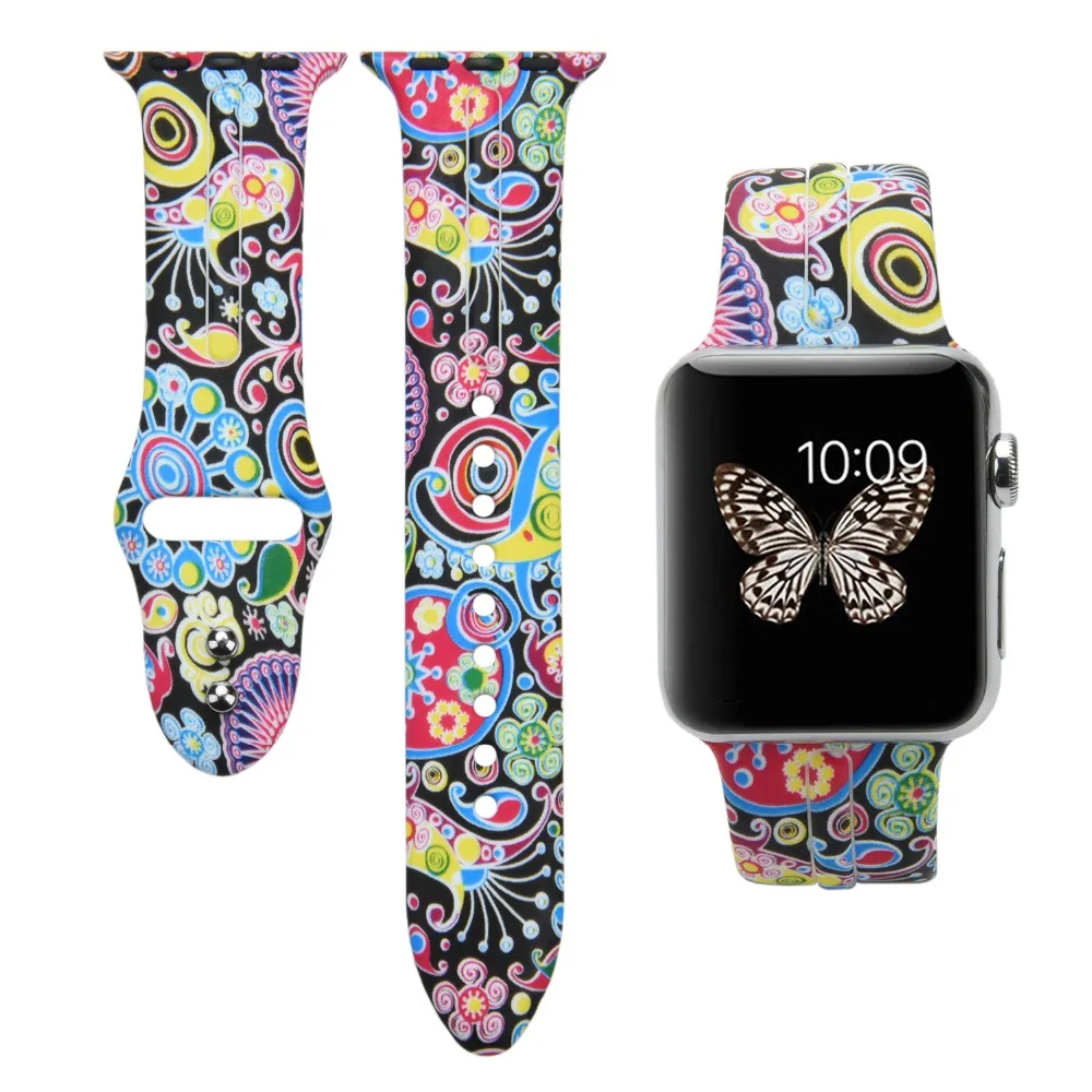 Odog Soft Silicon Printed Flower Watchband Strap Wristband for Apple Watch 4 3 2 1 Series 44mm 42mm 38mm Ladies Watch Smart Ring