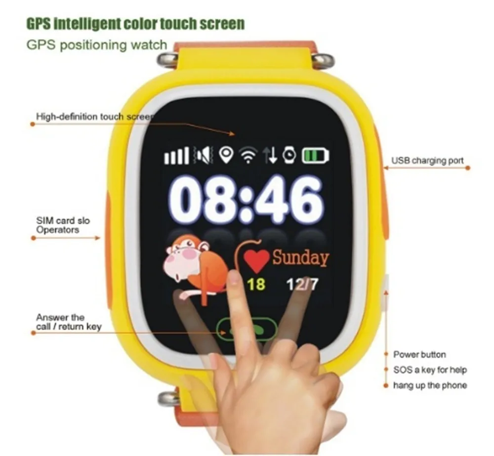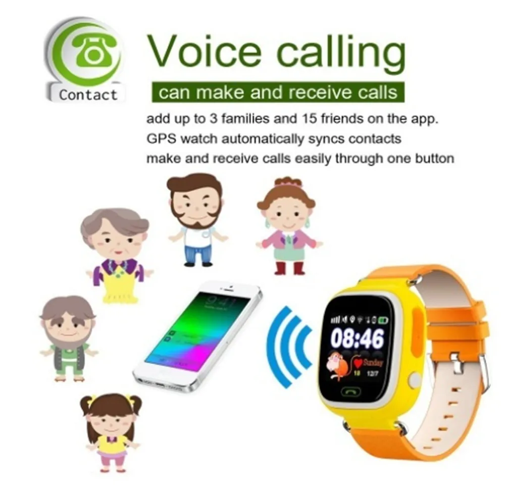 AMTERBEST Q90 GPS Phone Positioning Smart Watch 1.22 Inch Color Touch Screen SOS WristWatch with SIM Card Slot for Kids Children
