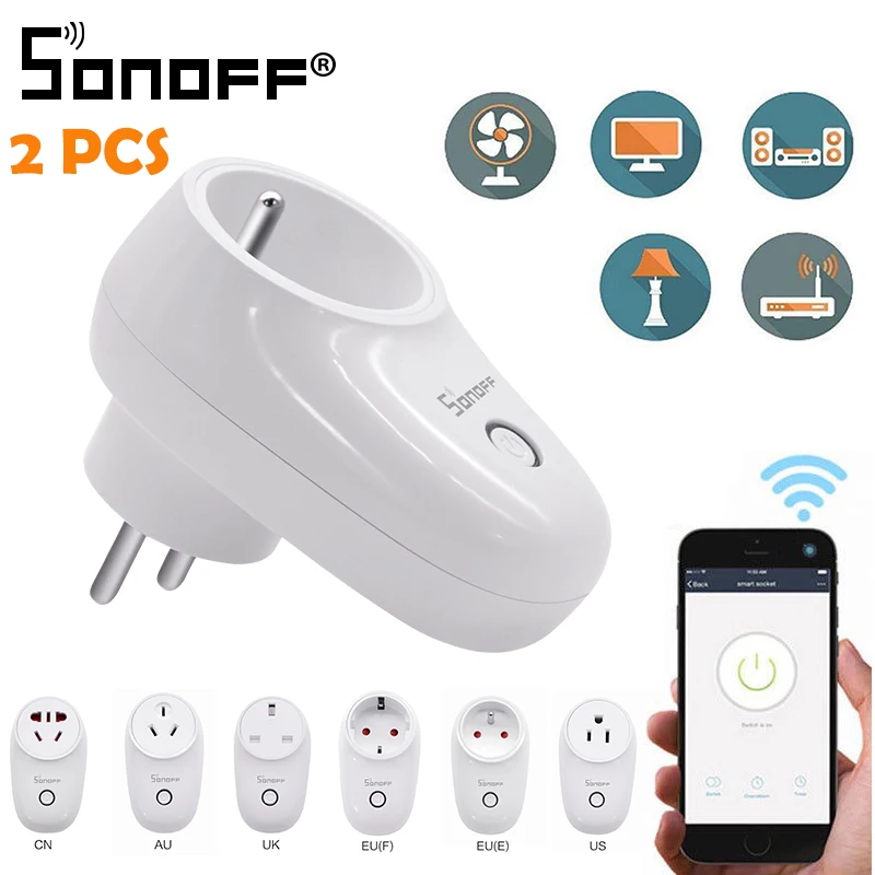 2PCS Sonoff S26 WiFi Smart Socket US/UK/EU Wireless Plug Power Sockets Smart Home Switch Work With Alexa Google Assistant IFTTT
