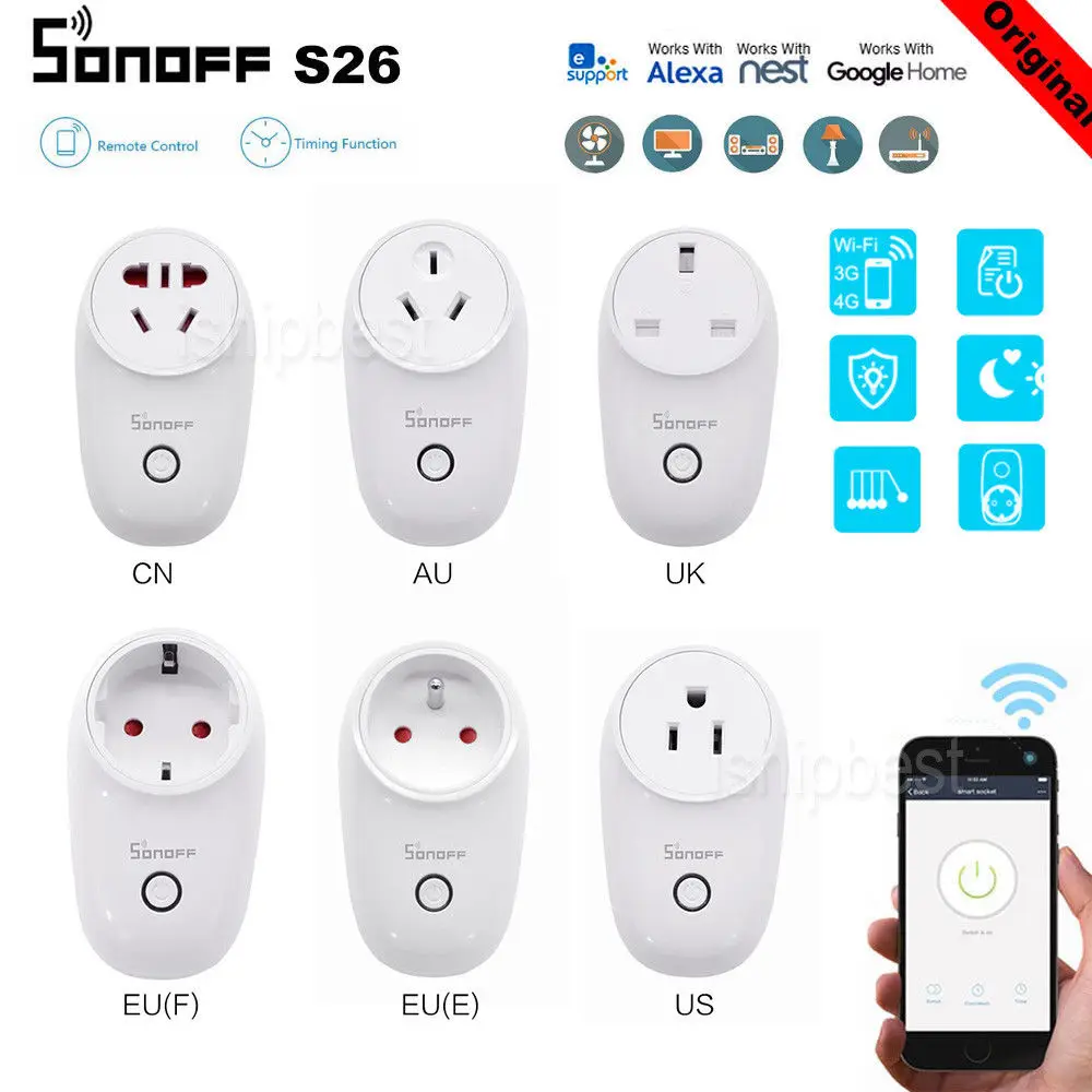 Sonoff S26 WiFi Smart Plug EU US UK CN AU Automation Smart Home Remote Socket Switch Compatible with Alexa Google Home IFTTT