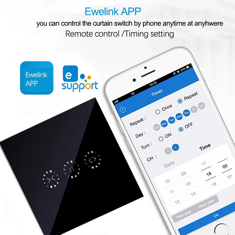 EU/UK Wifi Curtain Wall Switch via APP/Voice Control by Alexa Google Home for Smart Home electric curtain Motors Roller Shutter