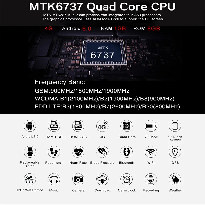 4G Smart Watch Q1 Pro MTK6737 Quad Core Android 6.0 1GB 8GB Wifi SmartWatch Phone Heart Rate Monitor SIM Card Replaceable Strap