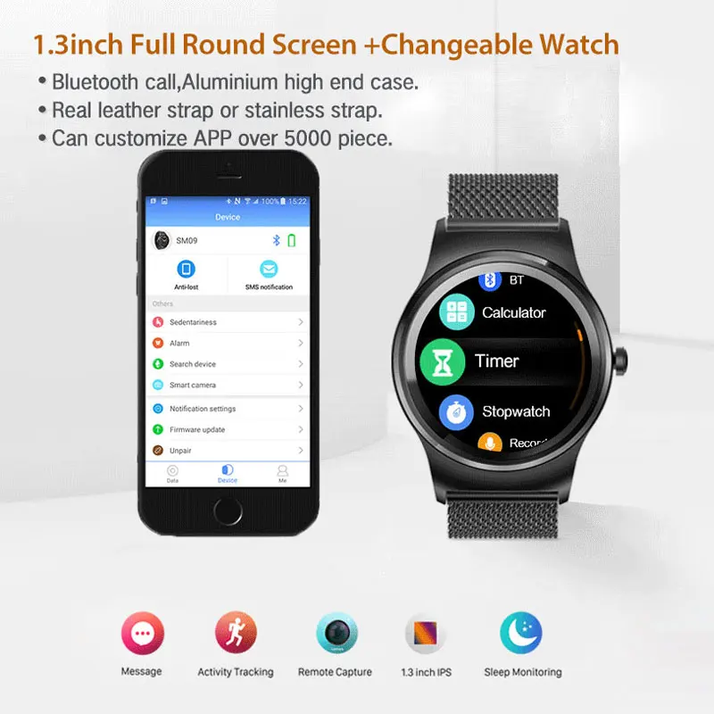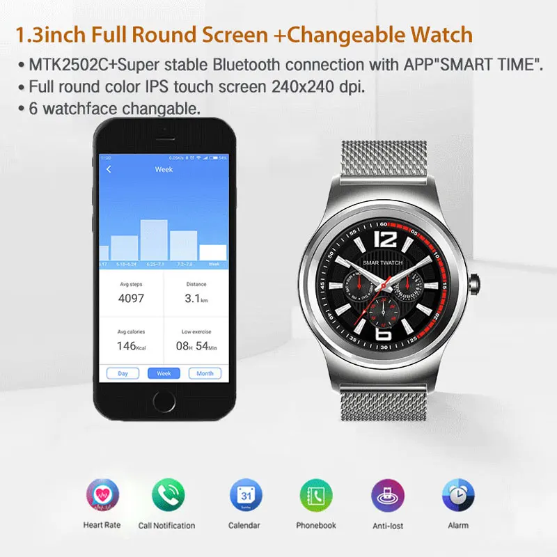 Men Hybrid Smart Watch Stainless Steel Smartwatch BOWANG R1 Business Heart Rate Waterproof Voice Control Mic IOS Android W19