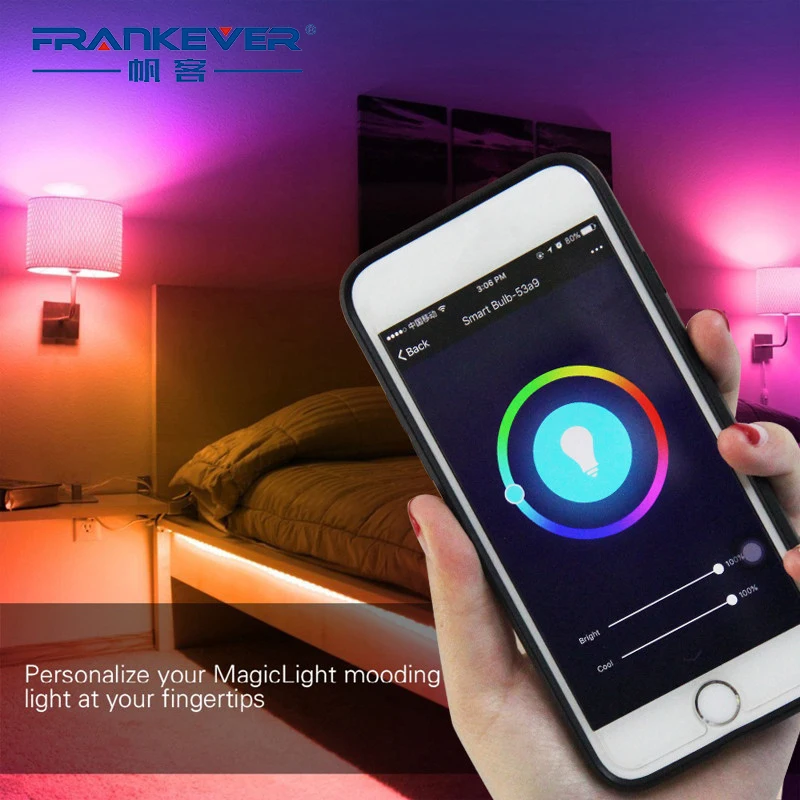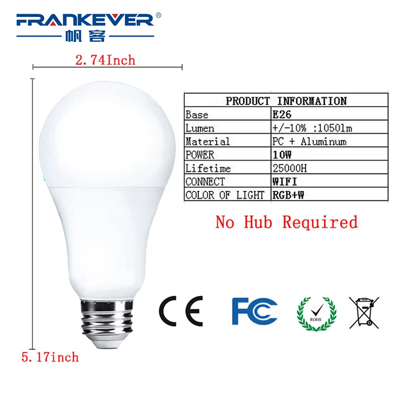 FRENKEVER Smart Bulbs Dimmable Wireless WIFI E26 E27 10W LED Lamp 220V Smart Remote Control Compatible with Alexa google home