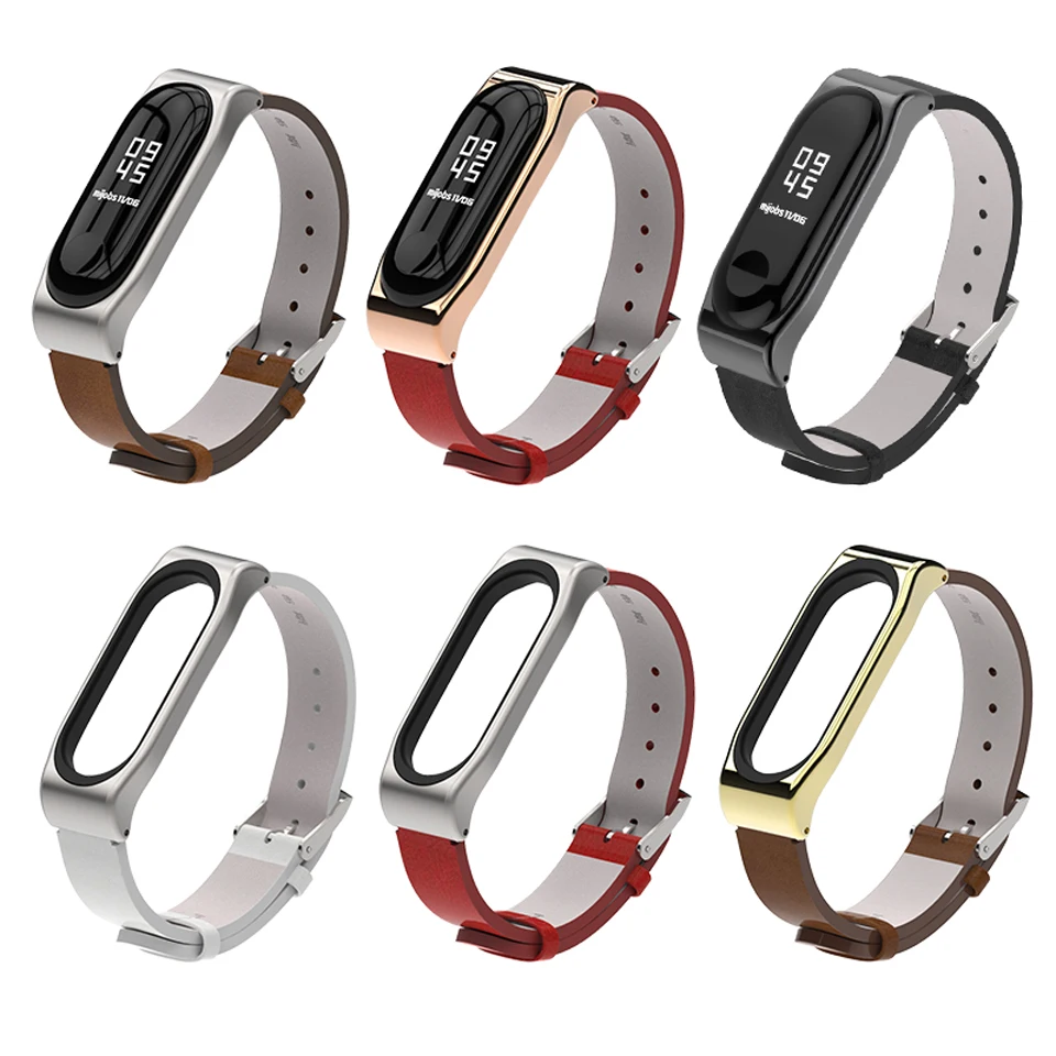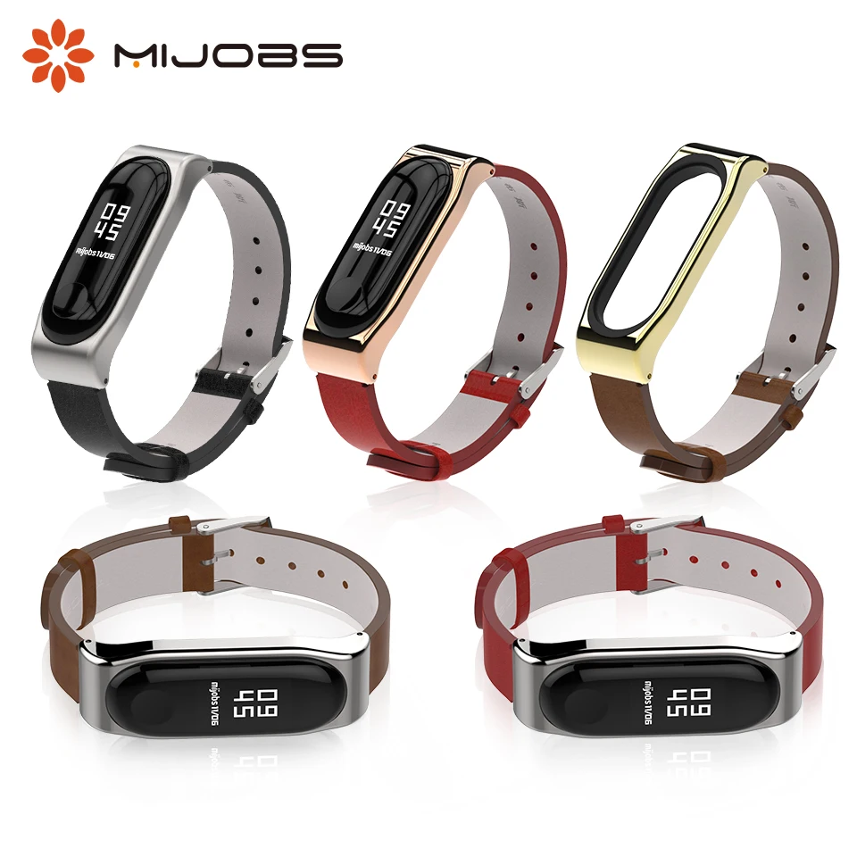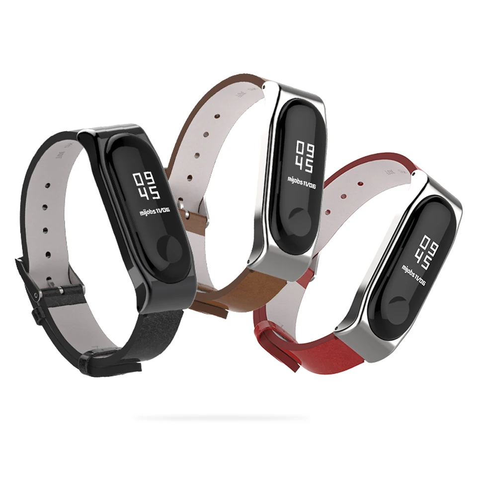 Mijobs Mi Band 3 Strap Leather PU Wristband for Xiaomi Mi Band 3 Smart Bracelet Screwless Band3 Wrist Strap Miband 3 Accessories