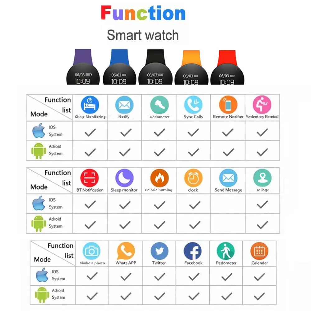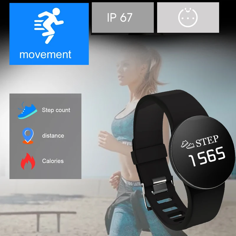 HATOSTEPED Smart Watch Waterproof Bluetooth Sport Tracker Wearable Device Wristband Pedometer Round 0.66 OLED For Ios Android